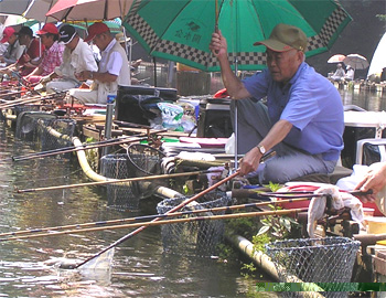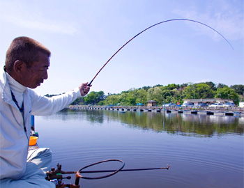 三十数年前になりますが全国の色々な釣り場、釣具店で売れているエサを聞いたところ、「麩のエサが売れている」との言葉を聞きました。ちょうど麩系のエサが主流になりつつあるときでした。ヘラブナ釣りが変化していて、これからの釣りはどう進化して行くのだろうと思いました。その時に気が付いたのがエサの振込みでした。それ以前は廻し振り、襷振りが主流でしたが、柔らかいエサでは飛んでしまう。エサ持ちの関係からも振込み回数も多くなり、柔らかいエサ(ペトコン)をポイントに打ち込まなければならないので送り込みになる。麩系の大エサ、送り込みの回数、水切れの問題などで竹の穂先に限界を感じていました。